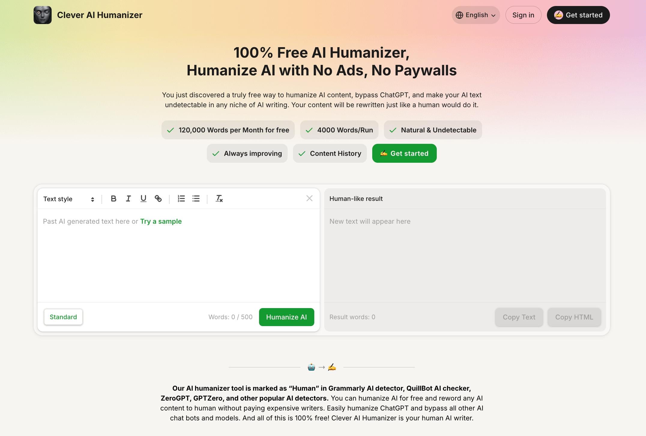 Clever AI Humanizer - Turn AI into human Make AI text read like you wrote it