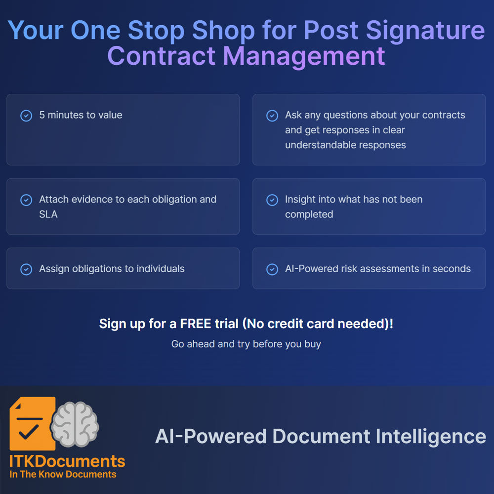 ITKDocuments - Contract Management for Obligations, SLA's, Risk Analysis & Legal Understanding